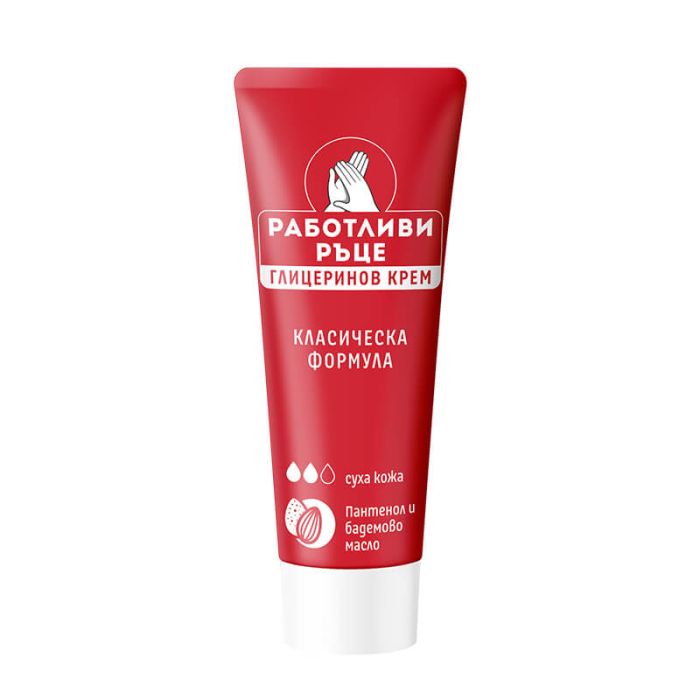 Lavena Работливи ръце Глицеринов крем за суха кожа Класическа формула е специално разработен за сухата кожа, която има нужда от интензивно подхранване и хидратиране. Разработената формула е обогатена с пантенол и силиконови масла, които проникват в дълбочина и възстановяват загрубялата и раздразнена кожа, вследствие на честата употреба на препарати и други агресивни материали. Съдържащите се активни съставки в Лавена Работливи ръце Глицеринов крем за суха кожа Класическа формула действат изключително благоприятно успокояват възпалените участъци и стимулират регенеративните процеси. Същевременно имат противовъзпалителен ефект, повишават еластичността и предотвратяват изсушаването. Деликатната текстура на крема е лесна за нанасяне и приятна за употреба. След използване ръцете са обновени, защитени, с чувство на комфорт и подобрен външен вид.