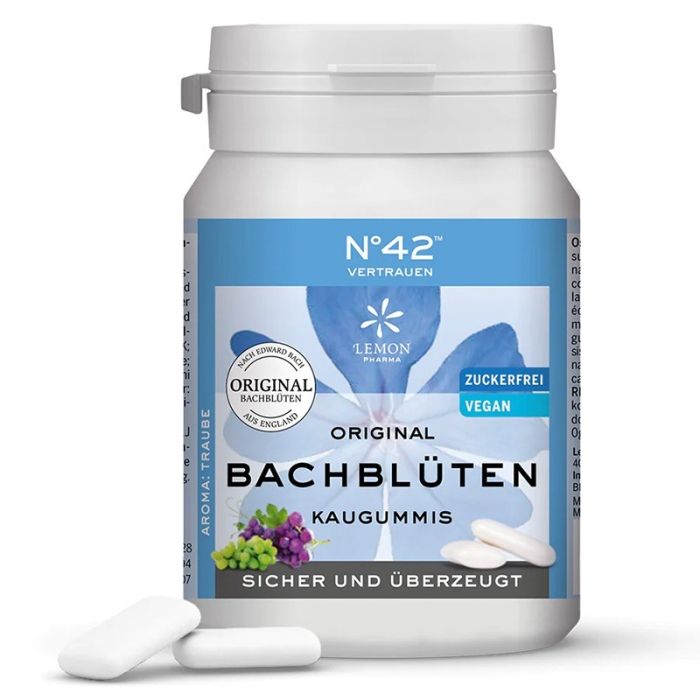 N42 Confidence Original Fleurs de Bach chewing gums са дъвки с освежаващ вкус на боровинка и напълно натурален състав. Дъвките ободряват, спомагат самочувствието, вътрешната стабилност и увереност в моментите на колебание. Основата на формулата са висококачествени цветни есенции по метода на д-р Бах, сред които ще откриете Лиственица, Трепетлика, Тинтява и Зъбна трева. Всяка от тях е внимателно подбрана, за да подпомогне способността за справяне със съмнения, несигурност и вътрешни страхове.Комбинацията от активни съставки въздейства благоприятно върху ума и емоционалния баланс, като помага на хората да се чувстват по-целеустремени, спокойни и сигурни в собствените си решения. Дъвките насърчават устойчивия оптимизъм дори след неуспех, стимулират интуицията и желанието за действие, като същевременно подпомагат способността да се извличат поуки от трудностите.Паралелно с психо-емоционалните ползи, №42 Д-р Бах Дъвки Доверие поддържат устната хигиена, като подобрява баланса на оралната флора и предпазва от образуване на зъбна плака. Не съдържат захар, алкохол, аспартам, глутен и са подходящи за вегани.