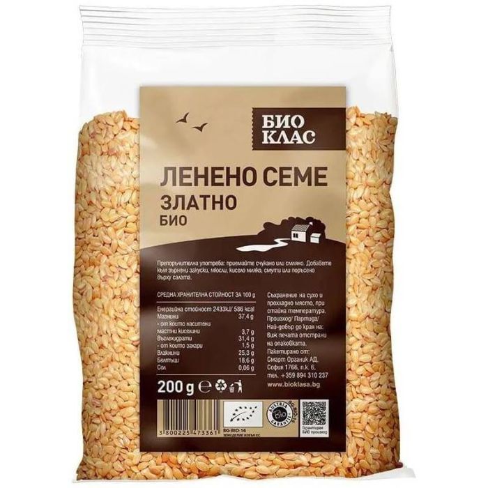 Златно ленено семе Био Класа е по-светла разновидност на кафявото, като има подобен хранителен състав - омега-3, фибри и лигнани, които отпускат червата, контролират хормоналните нива при жените и помагат за по-здрави коса и кожа. Златно ленено семе Био Класа е подходящо за добавяне към мюсли, смути, салатен дресинг и печива.