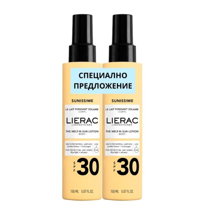 Комплектът съдържа: Lierac Sunissime Слънцезащитно мляко за тяло SPF30 150 мл. 2 бр.