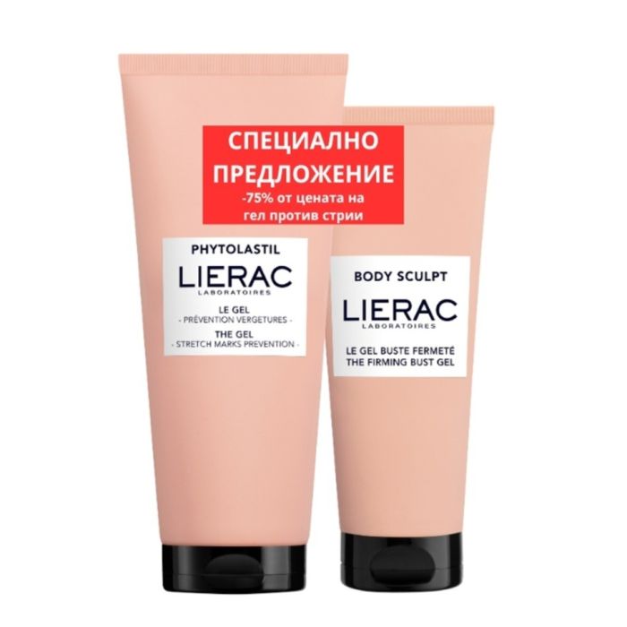 Комплектът съдържа: Lierac Phytolastil Гел против стрии 200 мл. 1 бр. + Lierac Body Sculpt Стягащ гел за бюст и деколте 75 мл. 1 бр.