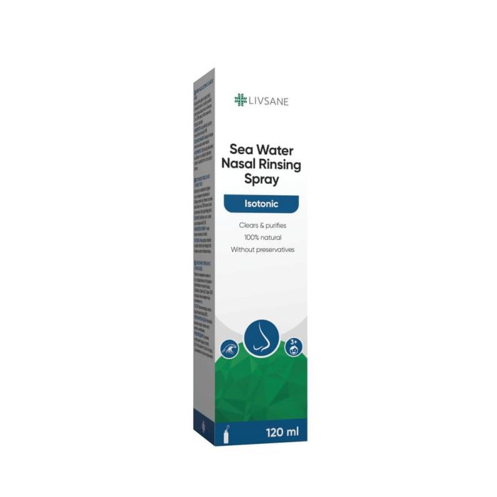 LIVSANE Изотоничен спрей за нос с морска вода е ежедневен разтвор за назална хигиена, предназначен да прочисти и пречисти носните проходи. Медицинското изделие силно хидратира носната кухина благодарение на механичното си промиване и екстракция. Това поддържа носната лигавица отворена. Ливсейн Изотоничен спрей за нос с морска вода е 100% натурален. Без консерванти и пропеленти, спреят е щадящ чувствителните носни проходи, което го прави идеален за редовна хигиена и успокояваща ежедневна употреба. Ергономичният апликатор на LIVSANE позволява лесна употреба у дома или в движение, като поддържа дихателното ви здраве всеки ден.