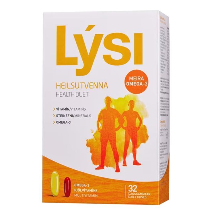 Lysi Health Duet е хранителна добавка, която съчетава Омега-3 мастни киселини и богат комплекс от витамини и минерали за цялостна подкрепа на организма. Всяка дневна доза съдържа две капсули, едната с рибено масло, богато на EPA и DHA, които поддържат сърцето, мозъка и зрението, а другата комбинира витамини A, C, D, E, B-комплекс (B1, B2, B3, B5, B6, B9, B12) и минерали за оптимален метаболизъм и енергия. Формулата подсилва имунната система, подобрява концентрацията и настроението, стимулира изгарянето на мазнини. Омега-3 киселините подпомагат кръвообращението, намаляват възпаленията и се грижат за здравето на ставите. Витамините в комплекса насърчават здравината на костите, кожата, косата и ноктите, като същевременно защитават клетките от оксидативен стрес. Лизи Хелт Дует Мултивитамини и омега 3 благоприятства както физическата, така и психическата устойчивост, допринася за по-добро настроение и жизнен тонус. Подходящ е за хора с активен начин на живот, търсещи ежедневна подкрепа за добро здраве и баланс.