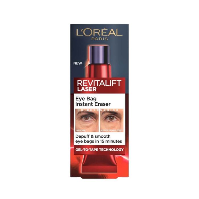 L’Oreal Revitalift Laser Eye Bag Instant Eraser e крем за околочния контур, който осигурява ефективна грижа срещу бръчки около очите. Иновативната му формула, обогатена с кофеин, ускорява микро-циркулацията на кожата и тушира торбичките под очите. Бръчките са видимо намалени. Контурът е по-стегнат и озарен. Л'Ореал Ревиталифт Лазер Околоочен крем е снабден с метален апликатор за охлаждащ ефект. Без парабени. Дерматологично и офталмологично тестван продукт.