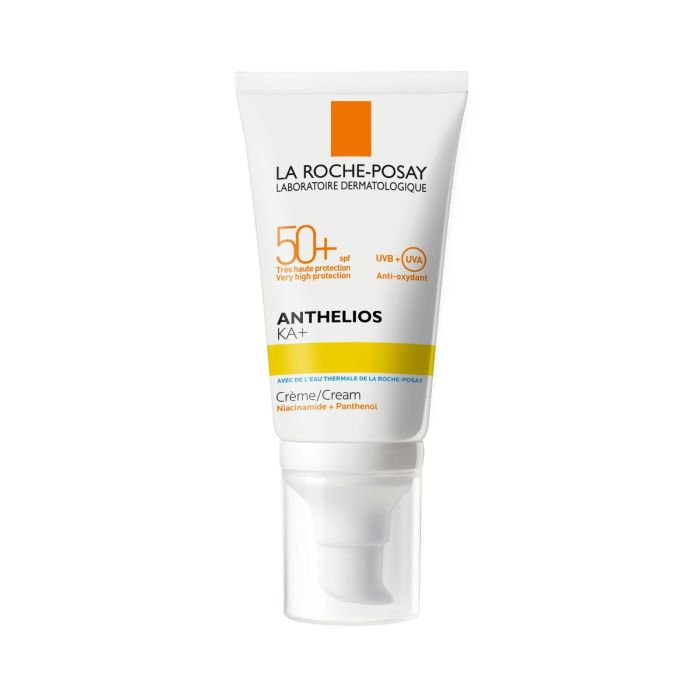 La Roche-Posay Anthelios KA+ SPF50+ Cream е експертно решение при UV-индуцирани състояния на кожата. Ла Рош-Позе Антелиос КА+ Слънцезащитен крем за лице SPF50+ осигурява широкоспектърна много висока UV защита благодарение на технология CELLULAR-DEFENCE, базирана на патентована и фотостабилна филтърна система. Формулата осигурява оптимална, широкоспектърна UVB & UVA защита, предпазва от клетъчно увреждане, фотостареене, както и други UV-индуцирани кожни състояния. Антиоксидантната формула помага за защита срещу определени увреждания, провокирани от комбинацията замърсяване и инфрачервени лъчи. Без парабени. Дерматологично тестван продукт.