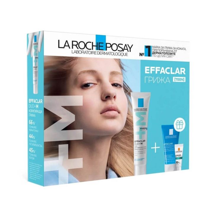 Комплектът съдържа: La Roche-Posay Effaclar Duo (+) Коригиращ крем 40 мл 1 бр + La Roche-Posay Effaclar Измиващ гел за лице 50 мл 1 бр + La Roche-Posay Anthelios Oil Correct Слънцезащитен гел-крем за лице 3 мл 1 бр.