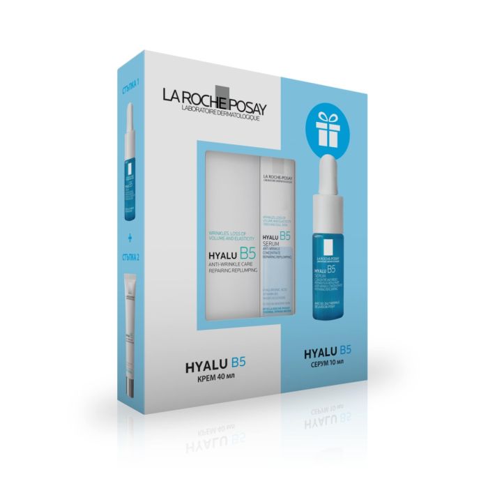 Комплектът съдържа: La Roche-Posay Hyalu B5 Интензивен хидратиращ крем против бръчки за чувствителна кожа 40 мл 1 бр + La Roche-Posay Hyalu B5 Интензивен хидратиращ серум против бръчки за чувствителна кожа 10 мл 1 бр.