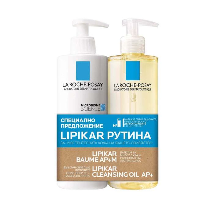 Комплектът включва: La Roche-Posay Lipikar AP+М Балсам против раздразнения 400 мл 1 бр + La Roche-Posay Lipikar AP+ Липидовъзстановяващо измиващо олио за бебета, деца и възрастни 400 мл 1 бр.