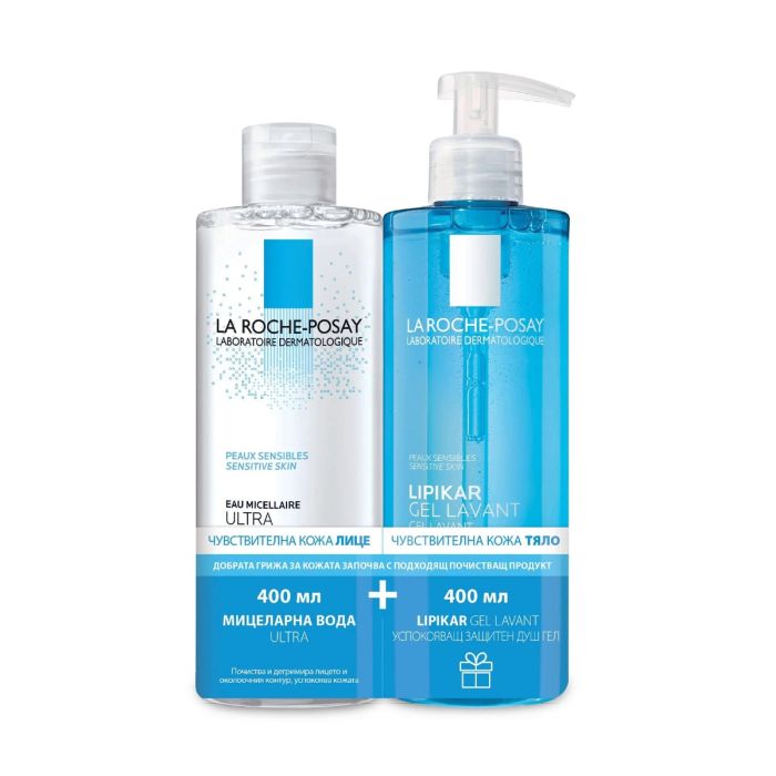 Комплектът съдържа: La Roche-Posay Ultra Мицеларна вода за лице за чувствителна кожа 400 мл 1 бр + La Roche-Posay Lipikar Измиващ успокояващ душ-гел за бебета, деца и възрастни 400 мл 1 бр.
