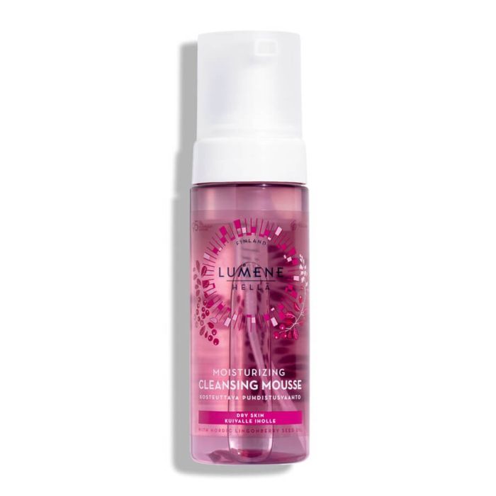 LUMENE Moisturizing Cleansing Mousse е почистваща грижа за суха и нормална кожа, която ефективно премахва грима, замърсяванията и излишния себум, като същевременно спомага за запазване на хидробаланса на кожата. LUMENE Хидратираща почистваща пяна за лице за суха кожа е обогатена с подхранващо масло от семена на скандинавска червена боровинка и арктическа термална вода, които подпомагат хидратацията и създават усещане за комфорт. Веган формула с 99% натурален състав.