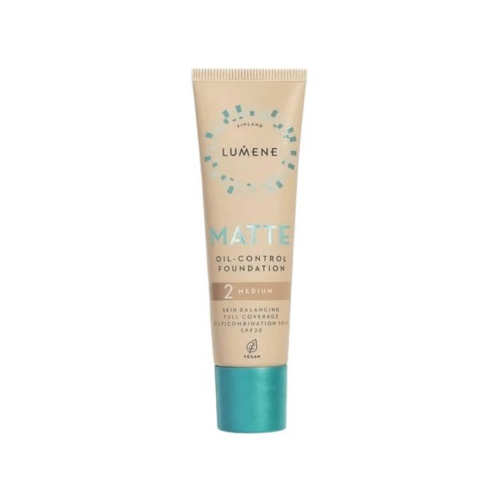 LUMENE VEGAN MATTE Oil Control foundation SPF20 е матиращ фон дьо тен, който предпазва от вредните слънчеви лъчи. Не запушва порите и спомага за балансиране на омазняването. Формулата му е обогатена с екстракти от арктическа спирея и родиола, които предпазват от възпаления, успокояват и балансират кожата, което го прави подходящ за кожа, склонна към акне. Съдържащият се във формулата ниацинамид коригира разширените пори, пигментните петна, зачервяванията и неравномерния тен. ЛУМЕНЕ ВЕГАН МАТТЕ Веган фон дьо тен SPF20 е подходящ за чувствителна, мазна и комбинирана кожа. Предлага се в рециклируема опаковка. Веган формула, без аромат.