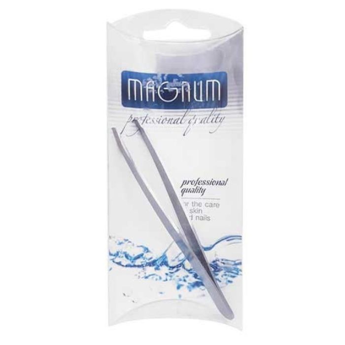 Magnum Professional 069 Неръждаема пинсета скосена 9,5 см e практична и удобна пинсета за почистване на вежди и отстраняване на нежеланото окосмяване по лицето с професионална прецизност. Магнум Профешънъл 069 Неръждаема пинсета скосена 9,5 см се отличава с удобен и ефективен дизайн с класически оформен скосен връх, осигуряващ плътно прилепване на двете части една към друга, захващайки косъма здраво и изтегляйки го от корена. Продуктът е изключително удобен по време на употреба. Пинсетата е изключително здрава, тъй като е изработена от неръждаема стомана. Отличава се още с практичния си размер от 9,5 см, благодарение на който се побира спокойно в дамските несесери.