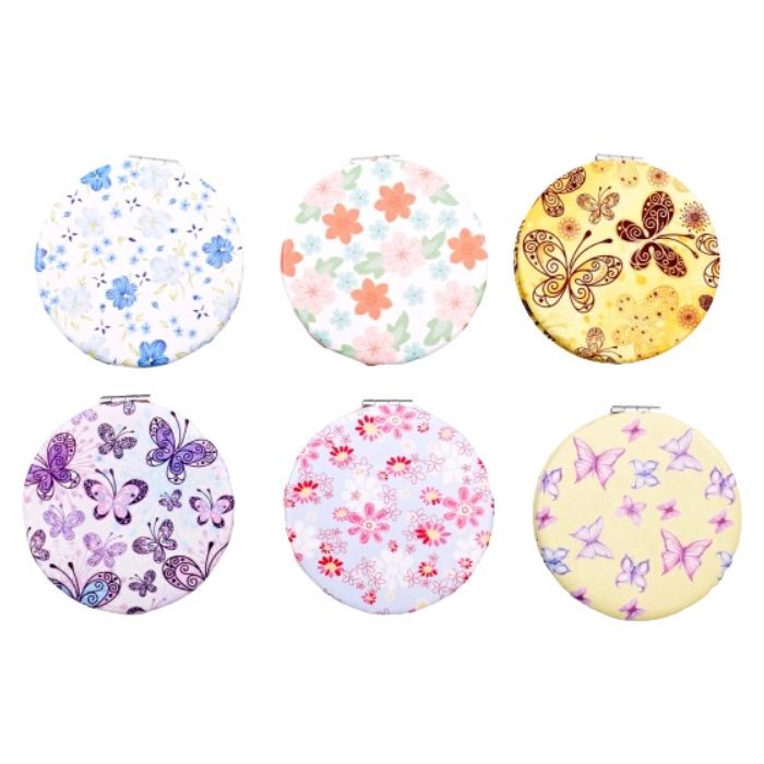 Magnum Feel the Style 139 Огледало никел орнамент е стилно и удобно огледалце, предназначено за козметични цели. Магнум Фиил дъ Стайл 139 Огледало никел орнамент се отличава с красивото си цветно капаче от наподобяващ кожа материал, което се предлага в 6 различни дизайна с цветя и пеперуди. Продуктът е изключително функционален, тъй като разполага с две огледала - едно, отразяващо образа в реални размери, и второ - с двойно увеличаващ ефект, което прави гримирането и грижата за лицето по-лесни. Огледалото е със специален корпус от никелирана стомана, осигуряваща му здравина и издръжливост. Освен това разполага с копче за закопчаване което предпазва от случайно разтваряне, докато е в несесера или чантата. По този начин се избягва рискът от счупване и/или издраскване. Огледалото се предлага в мека и елегантна кадифена торбичка, служеща за съхранение. С диаметър от 7 см.