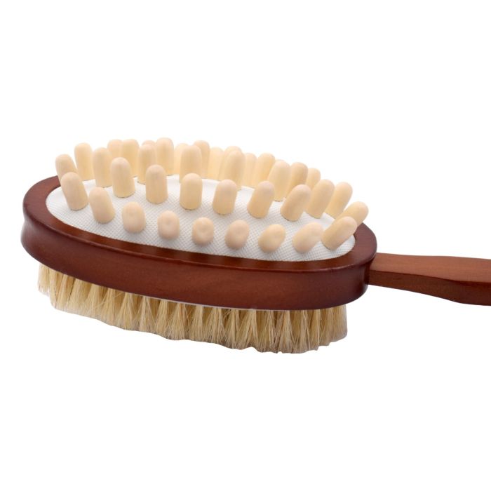 Magnum Natural 171 Четка за баня комбинирана Премиум е висококачествен двустранен аксесоар за баня, който е предназначен за масажиране и ексфолииране на кожата, за ефективното отстраняване на замърсяванията. Магнум Нейчъръл 171 Четка за баня комбинирана Премиум е изработена с естествен косъм, отличаващ се със своята хипоалергенност. Четката е подходяща за употреба при вземане на душ, във ваната или сауната и осигурява изключително ефективен и приятен масаж, нежна ексфолиация, благоприятства циркулацията на кръвта, стимулира нервната и имунната система. Разполага с дълга дървена дръжка от крушова дървесина, която спомага за достигане дори на най-недостъпните части на гърба. В същото време дръжката може да се сваля, за да използвате главата на четката с ръка. Главата е двустранна. Четката има и шнур, подходящ за закачане и удобно съхранение и е хипоалергенна.