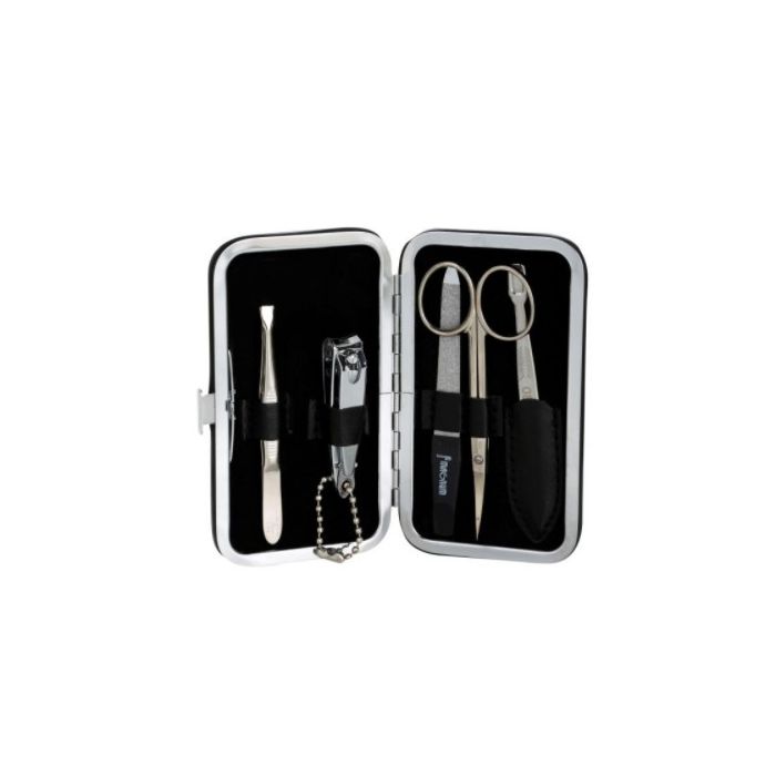 Magnum Feel the Style Комплект за маникюр и педикюр черно кадифе представлява стилен несесер с всички необходими инструменти за поддържането на перфектни маникюр и педикюр у дома. Магнум Фийл дъ Стайл Комплект за маникюр и педикюр черно кадифе е несесер от стилно черно кадифе и съдържа 5 оригинални инструмента за маникюр и педикюр Солинген. В несесера ще откриете метална пила за нокти, нокторезачка, инструмент за рязане на кожички, ножичка за кожички, пинсета - подходяща както за косъмчетата на пръстите на краката, така и за веждите и други окосмени места от тялото. Несесерът е изключително практичен, тъй като е малък и лек, което го прави лесен за побиране в дамската чанта и за пренасяне. Освен това се отличава със здрав корпус, направен от висококачествена никелирана стомана. Разполага и с механизъм за заключване, който предпазва от отварянето му в чантата. Несесерът се предлага опакован в стилна кутия, което го прави много подходящ за подарък.