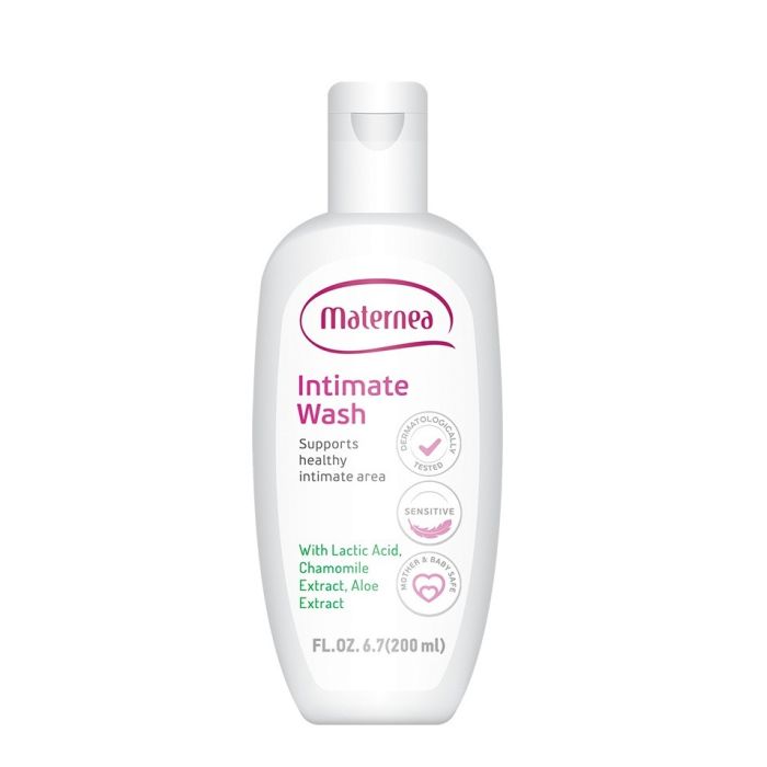 Maternea Intimate gel е интимен измиващ продукт с балансирано pH, специално създаден за периода на бременност. Формулата с млечна киселина поддържа оптимално ниво на pH между 3,5 и 4,5 и подпомага естествения баланс на интимната микрофлора. Без добавен сапун, дерматологично тестван и подходящ за чувствителна кожа, той осигурява нежна и безопасна грижа за майката и бебето. Обогатен с алантоин и глицерин, продуктът създава усещане за комфорт и защита. Екстрактите от алое вера и лайка, които са част от състава на Матернеа Интимен гел за бременни овлажняват и успокояват, оставяйки чувство за свежест с деликатен аромат.