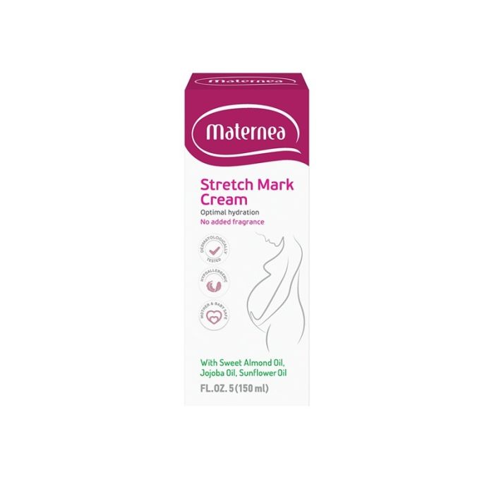 Използвай крем против стрии Maternea още от първите месеци на бременността, защото освен разтягането на кожата, рязкото увеличаване на хормоните също създава предпоставки за образуването на стрии. Продължи поне месец след раждането, когато кожата бързо се свива.