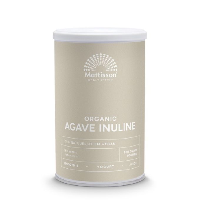 Mattisson Biologische Agave Inuline е растителна хранителна добавка на прах, която представлява естествен източник на разтворими фибри и се използва като допълнение към балансирания хранителен режим. Той подпомага нормалното функциониране на храносмилателната система, като допринася за по-добра чревна перисталтика и комфорт. Благодарение на високото си съдържание на фибри, инулинът подпомага развитието на полезните бактерии в чревната микрофлора, което има значение за поддържането на балансирана чревна среда. Това от своя страна допринася за по-ефективно храносмилане и усвояване на хранителните вещества. Продуктът се свързва и с благоприятно въздействие върху отделителната система, като подпомага естествените процеси на елиминиране в организма. Матисън Био Инулин от агаве е подходящ за ежедневен прием като част от разнообразното хранене, особено при необходимост от допълнителен прием на фибри.