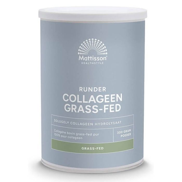 Mattisson Runder Collageen Grass-Fed Solugel е висококачествен говежди колаген, добит от свободно пасящи говеда, който осигурява ценни колагенови пептиди с висока усвояемост. Формулата е богата на протеини и 18 аминокиселини, които участват в поддържането на съединителната тъкан и имат значение за нормалното функциониране на опорно-двигателната система. Колагенът подпомага здравето на костите, ставите и хрущялите, като съдейства за запазване на тяхната здравина и гъвкавост. Той има роля и в изграждането и поддържането на мускулната маса, особено при физическо натоварване или активен начин на живот. Допринася за синтеза на собствен колаген в организма, което е от значение за структурата и устойчивостта на тъканите. Матисън Колаген говежди хидролизат Солугел оказва благоприятно въздействие върху състоянието на кожата, като подпомага нейната еластичност и естествена регенерация. Също така допринася за поддържането на здрави коса, нокти и зъби, както и за общия външен вид.Колагеновите пептиди участват в поддържането на нормалното кръвообращение и имат значение за възстановителните процеси в организма, включително след физическо натоварване. Формулата се свързва и с подкрепа на когнитивните функции и общия тонус, както и с благоприятно влияние върху качеството на съня.