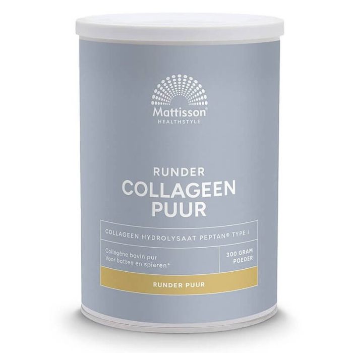 Mattisson Runder Collageen Hydrolysaat Pure е хранителна добавка с хидролизиран колаген тип I, извлечен от кожата на свободно пасящи говеда. Формулата осигурява лесно усвоими колагенови пептиди, които са естествен източник на аминокиселини и протеини, участващи в изграждането и поддържането на съединителната тъкан в организма. Колагенът тип I е основен структурен протеин, който има ключова роля за състоянието на кожата, костите, ставите и сухожилията. Приемът му подпомага синтеза на колаген и еластин, като допринася за поддържането на еластичността и хидратацията на кожата, както и за нормалната функция на опорно-двигателната система. Продуктът оказва благоприятно въздействие и върху мускулния тонус и възстановяването след физическа активност, като съдейства за поддържане на мускулната маса. Матисън Колаген говежди тип 1 допринася за нормалното състояние на косата, ноктите и зъбите, както и за общия комфорт при движение. Подходящ за добавяне в смути и сокове.