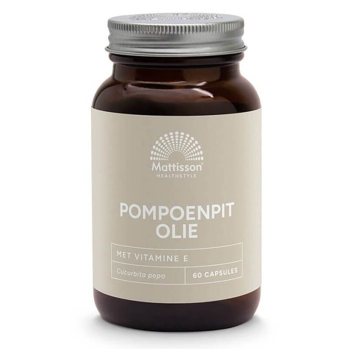 Mattisson Pompoenpit Olie met vitamine E е хранителна добавка под формата на капсули, предназначена да подпомага нормалното състояние на организма и да допринася за защитата на клетките от оксидативен стрес. Продуктът е подходящ за вегани и се получава чрез студено пресоване на семена от тиква (Cucurbita pepo). Маслото от тиквено семе е естествен източник на омега-6 и омега-9 мастни киселини, както и на редица биоактивни съединения. Тези мастни киселини участват в поддържането на нормалната функция на сърдечно-съдовата система, метаболизма и хормоналния баланс. Те са важни за клетъчната структура и нормалната физиологична функция на организма. В състава е включен витамин Е, който е мастноразтворим антиоксидант и подпомага защитата на клетките от външни фактори и свободни радикали. Той участва в процесите, свързани с нормалното състояние на кожата, косата и ноктите, и допринася за поддържане на клетъчната защита. Приемът на Матисън Масло от тиквено семе + Витамин Е допринася за поддържане здравето на простатата при мъжете и хормоналния баланс при жените