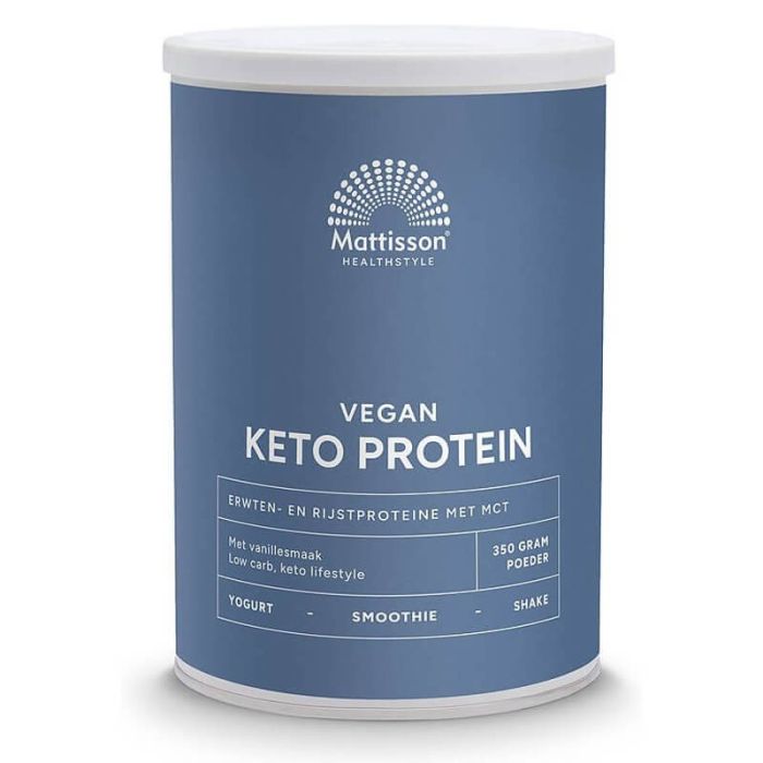 Mattisson Vegan Keto Protein shake - Pea, Rice & MCT е готов за употреба кето протеин, смес от оризов, грахов протеин и веган средноверижни мастни киселини на прах. Чудесен избор за активно спортуващи, бодибилдъри, физически активни хора. Продуктът спомага метаболизма и храносмилането, помага за натрупване на мускулна маса и допринася за поддържане на балансирано тегло. Багодарение на балансираната си формула оказва позитивно въздействие върху паметта и когнитивната функция, нивата на кръвна захар, подкрепя работата на сърдечно-съдовата система и черния дроб. Матисън Протеин от грах и ориз MCT Веган кето шейк е подходящ за комбиниране с диетични режими, включително кето. Подсладен със стевия, с аромат на ванилия.