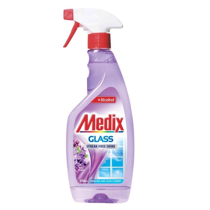 Medix glass Lilac е подходящ за ефективно почистване на стъкла и гладки повърхности. Формулиран с алкохол, Медикс глас Люляк не оставя петна след използване и има свеж люляков аромат. Опаковката с помпа улеснява използването. Лесно и бързо отстранява следи от пръсти, прах и различни петна.