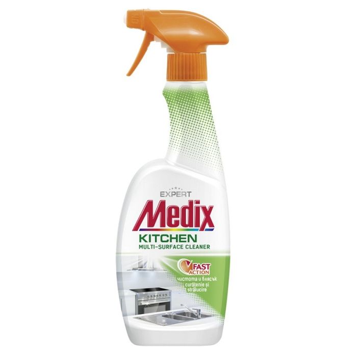 Medix Kitchen Multy-surface cleaner е ефективен универсален почистващ препарат, разработен за почистване на кухненски повърхности. Неговата активна пяна прониква дълбоко в натрупаните замърсявания, мазнини и остатъци от храна и ги разтваря лесно, без да оставя следи. Препаратът е подходящ за употреба върху работни плотове, печки, котлони, микровълнови и други кухненски повърхности, като оставя усещане за чистота и свеж аромат след почистване. Медикс Китчън Активна пяна Универсален почистващ препарат за кухня улеснява ежедневната поддръжка на кухнята, осигурявайки бързи и надеждни резултати без излишни усилия.