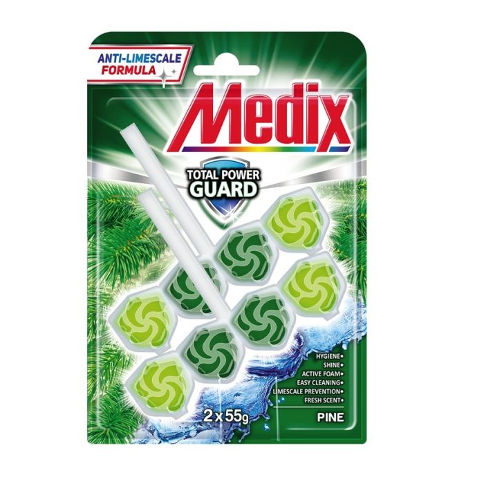 Medix WC Blocks total power guard Твърдо тоалетно блокче, бор 55 г х 2 бр Комплект