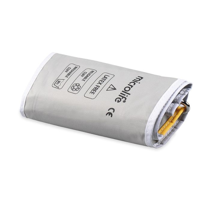 Маншет за апарат за кръвно налягане Microlife S е удобен маншет за поставяне на ръката над лакътя. Подходящият размер на маншета е от важно значение за точното измерване на кръвното налягане. Маншет за апарат за кръвно налягане Микролайф S е предназначен за обиколка на бицепса от 22 до 32 см. Маншетът е произведен от материали, които могат да се рециклират. Не съдържа латекс. Маншетът се мие лесно и може да се изпира на ръка с хладка вода.