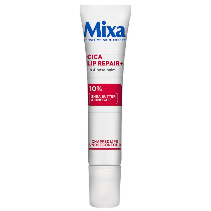 Mixa Cica Repair+ Lip & Nose Balm е нов балсам, който подхранва и омекотява сухи/напукани устни и зоната около носа, подобрявайки обновяването на кожната бариера. Микса Цика Рипеър+ Балсам за устни и нос е обогатен с 10% масло от ший и Омега 9, хидратира, изглажда и успокоява кожата, правейки устните по-малко напукани и дехидратирани. Подходящ за ежедневна употреба.