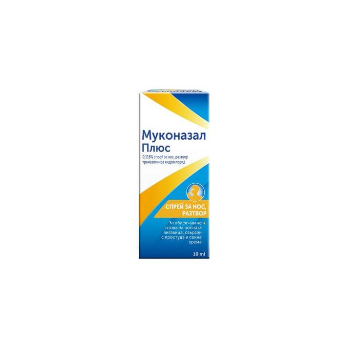 Muconasal Plus спрей за нос се прилага успешно при възпалителни заболявания на горните дихателни пътища и сенна хрема, за улесняване на отделянето на назален секрет при възпаление на синусите и инфекция на средното ухо (otitis media). Активното вещество е трамазолинов хидрохлорид. Муконазал Плюс спрей за нос свива кръвоносните съдове на носната лигавица, намалява отока и възпалението на лигавицата. По този начин отделянето на назален секрет е значително намалено. След впръскване в ноздрите, обикновено след 5 минути, настъпва локално свиване на съдовете, което трае от 8 до 10 часа.