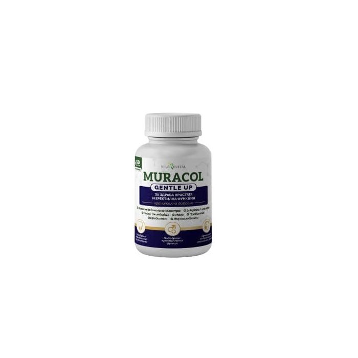 Muracol Gentle Up е хранителна добавка, предназначена за поддържане на здравето на простатата, подобряване на еректилната функция и фертилитета, както и за модулиране на имунната система. Муракол Джентъл Ъп съдържа комбинация от съставки като липозомна биволска коластра, сминдух, черен джинджифил, мака, L-аргинин, L-цитрулин, както и пробиотици и пребиотици.