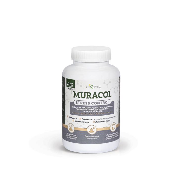 Muracol Stress Control е хранителна добавка под формата на капсули, предназначена за облекчаване на стрес, безсъние и безпокойство, както и за подпомагане на имунната система. Муракол Стрес Контрол съдържа растителни екстракти като ашваганда, маточина, пасифлора, лайка, джинджифил и жълт кантарион.