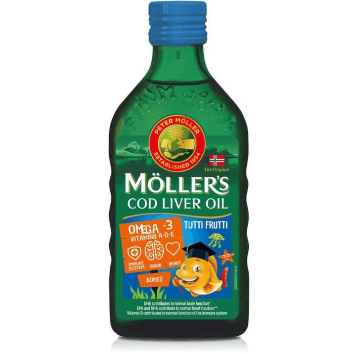 Möller’s Масло от черен дроб на треска с аромат на плодове е оригиналното норвежко масло от черен дроб на треска, патентовано от фармацевта Peter Möller през 1854 г., което помага за поддържането на здравето на поколения. Мьолерс Масло от черен дроб на треска с аромат на плодове е естествен източник на Омега-3 от дива треска, уловена в най-чистите студени норвежки арктически води в Лофотен и Вестеролен.