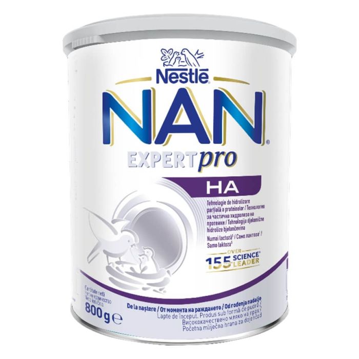 NAN EXPERTPRO H.A. с хидролизиран протеин Мляко за кърмачета 0М+ е продукт, специално разработен за бебета, които имат риск от развитие на алергия (например, ако има друг член на семейството с алергия). В млякото е използван оптимизиран микс от белтъци, който е получен чрез специална обработка. Това съществено намалява алергизиращия потенциал на кравето мляко. Предоставя базовите хранителни вещества необходими за нормалното физическо и психическо развитие на детето от раждането. НАН ЕКСПЕРТПРО с хидролизиран протеин Мляко за кърмачета 0М+ съдържа B. Lactis култури, близки до съществуващите в чревната флора на кърмачетата, както и DHA - мастна киселина, която се намира в кърмата. Ако детето е алергично към белтъците на кравето мляко, продуктът не е подходящ за употреба, без да е направена консултация с лекар. Въвеждането на краве или на което и да е друго мляко в менюто на кърмачетата е препоръчително да се консултира с лекар.