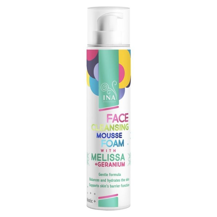 Ina Essentials Face Cleansing Foam with Melissa + Geranium е нежна формула за ежедневно почистване, създадена за всички типове кожа, включително чувствителна и склонна към акне. Пяната почиства в дълбочина, без да изсушава, като ефективно премахва замърсяванията и излишния себум, запазвайки естествения баланс на кожата. Обогатена с био вода от маточина, гераниум, пребиотик и екстракт от алое вера, формулата хидратира, успокоява и подпомага кожния микробиом. След употреба кожата остава свежа, мека и балансирана, без усещане за опъване. Подходяща за ежедневна употреба сутрин и вечер, Ина Есеншъл Натурална почистваща пяна за лице с маточина и гераниум ефективно премахва грим без да утежнява кожата.
