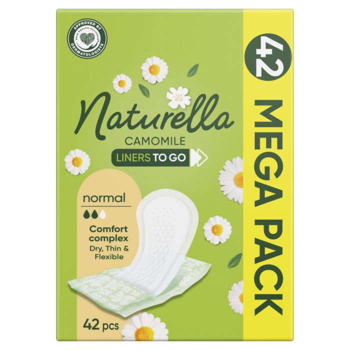 Naturella Camomile Mega Pack Pads представляват висококачествени ежедневни дамски превръзки, осигуряващи свежест, сигурност и комфорт през целия ден. Те са изключително тънки и удобни. Горният им слой е съставен от изключително деликатна памучна материя, непозволяваща запарване на кожата. Ежедневните дамски превръзки с лайка Натурела Камомил Мега пак залепват плътно към бельото и остават невидими под дрехите, като не позволяват изтичане и разместване. Превръзките разполагат със слой, напоен със специален Derma Crem, съдържащ екстракт от лайка. Той предпазва деликатната кожа от дразнене. С тях се чувствате удобно и комфортно през целия ден.