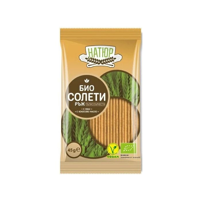 Натюр Био Пълнозърнести солети от ръж са направени с квас и хималайска сол, което ги прави идеалното лакомство, когато имате нужда от здравословна, органична храна с хрупкав вкус. Натюр Био Пълнозърнести солети от ръж са идеални за хапване между храненията. С глутен.