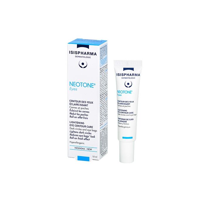 Neotone eyes е лека крем-гел формула насочена да намали тъмните кръгове, торбичките под очите и фините бръчки. Формулата с екстракт от Chlorella vulgaris, женско биле и тетрапептиди подпомага дренирането, намалява подпухналостта и изсветлява зоната около очите. Хиалуроновата киселина и алфа-бизаболол осигуряват анти-ейдж и успокояващ ефект за по-гладка и свежа кожа. Неотон Айс Крем-гел за околоочния контур е без ароматизатори, с удобен ролон апликатор и е тестван под дерматологичен и офталмологичен контрол.