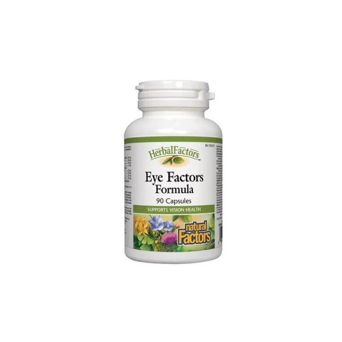 Natural Factors Herbal Factors Формула за очи 260 мг 90 капсули представлява хранителна добавка с каротеноида лутеин, черна боровинка и мулти-антоцианидини. Натурал Факторс Хербал Факторс Формула за очи 260 мг 90 капсули съчетава билки и хранителни вещества, дъстващи благоприятно на очите и редуциращи увреждането от свободните радикали. Мулти-антоцианидините представляват екстракти от сини, черни и червени боровинки, грозде, малини, ягоди, черен бъз, моркови и очанка. А действието им е да унищожават свободните радикали, да предотвратяват окислението при светлина, да нормализират състоянието на зрението. Хранителната добавка също така засилва зрението при силно натоварване, спомага го при излагане на силна светлина, увеличава възможността за вуждане и адаптиране на очите в тъмното, редуцира умората, зачервяването и сухотата на очите, отличава се с противовъзпалително действие. Формулата за очи на Natural Factor се състои единствено от безопасни за организма билки и хранителни вещества, които в същото време са и силни антиоксиданти. Подходящ за прием при високо натоварване на очите и при напредване на възрастта.