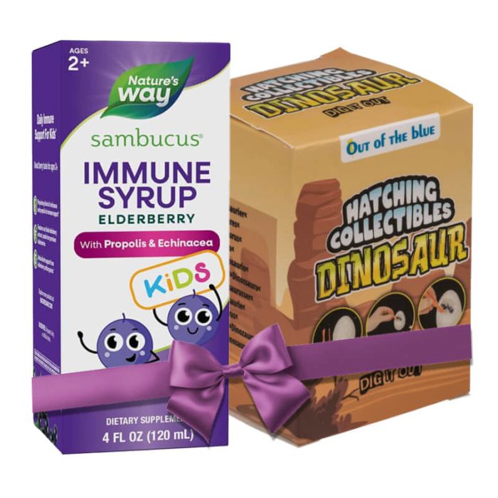 Комплектът съдържа: Nature's Way Sambucus Original syrup Kids With Echinacea Сироп за деца с черен бъз и ехинацея за силен имунитет 120 мл + Подарък 1 бр.