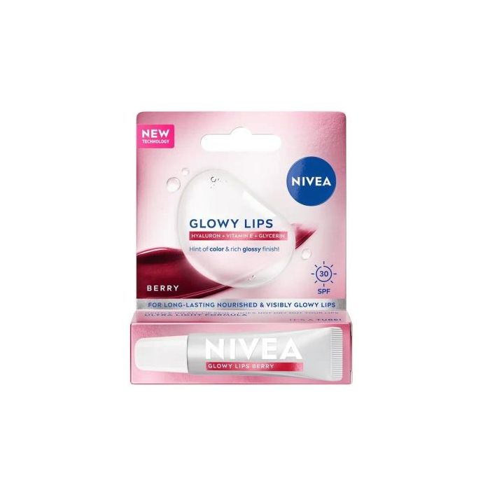 Nivea Glowy Lips Berry SPF30 lip balm е формула обогатена с ултрахидратиращ комплекс от хиалуронова киселина, витамин Е и глицерин, който възстановява естественото сияние на устните. Подхранва в дълбочина и предпазва от изсушаване. Кожната поносимост е дерматологично потвърдена. С деликатен оттенък и интензивен, сияен финал, Нивеа Глоуи Липс Бери Балсам за устни придава изразителен блясък.Освен това предлага слънцезащитен фактор SPF 30 за допълнителна защита. Веган формула.