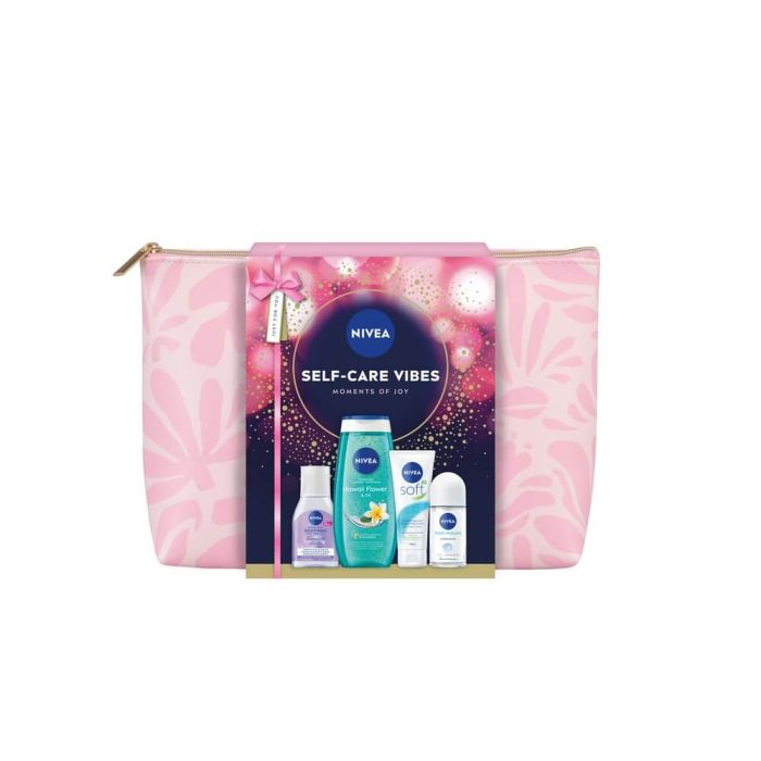 Комплектът съдържа: Nivea Fresh Natural Дезодорант рол-он против изпотяване за жени 50 мл 1 бр + Nivea Creme Soft Интензивен овлажняващ крем 75 мл 1 бр + Nivea Hawaii Flower & Oil Душ-гел за тяло с хавайско цвете и масла 250 мл 1 бр + Nivea Micellair Expert Мицеларна вода за чувствителна кожа 100 мл 1 бр + Подарък: несесер 1 бр.