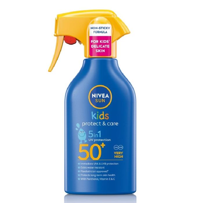 Nivea Sun Protect Kids SPF50+ е слънцезащитен продукт, създаден за чувствителната детска кожа, който осигурява много висока UVA и UVB защита. Формулата предпазва от слънчево изгаряне и спомага за намаляване на риска от дългосрочни увреждания, причинени от слънцето. Лосионът е дерматологично тестван и е подходящ както за лице, така и за тяло, като предлага нежна грижа и добра поносимост. Водоустойчвата текстура е обогатена с витамини С и Е и пантенол. Нивеа Сън Протект Кидс Слънцезащитен лосион за лице и тяло за деца SPF50+ се нанася лесно, благодарение на помпата. Абсорбира се бързо и не оставя лепкав слой, което го прави удобен за ежедневна употреба при излагане на слънце.