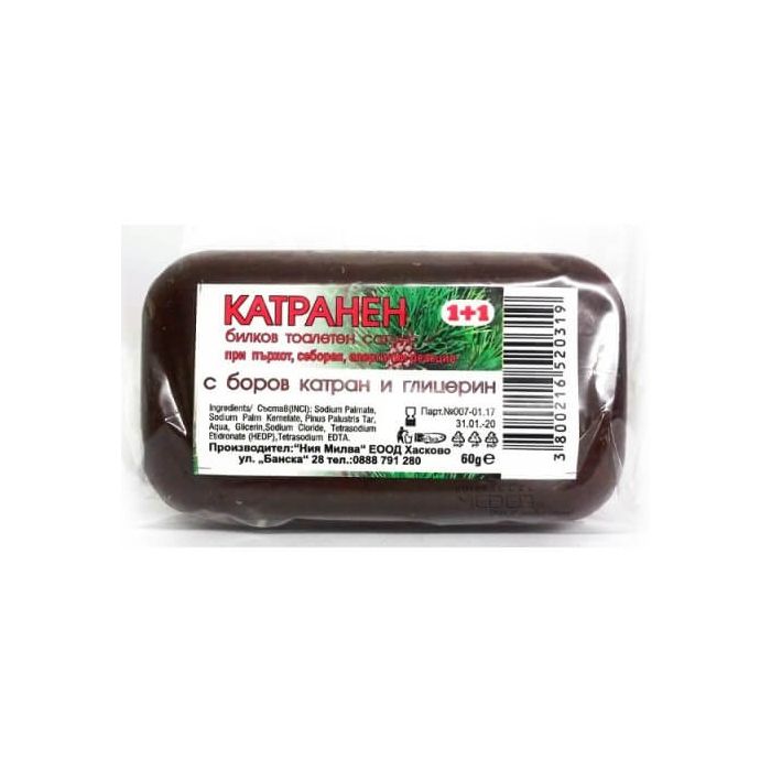 Nia Milva Сапун с катран и глицерин е висококачествен сапун, обогатен с екстракт от боров катран. Ния Милва Сапун с катран и глицерин ефективно помага при пърхот, себорея, екземи и кожни раздразнения. Има успокояващ ефект и спомага при гъбички.