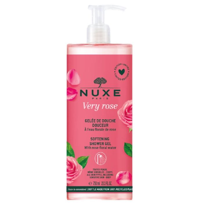 Nuxe Very Rose Soothing Shower Gel е душ гел за тяло, който превръща ежедневния душ в луксозно и чувствено изживяване. Подходящ за всеки тип кожа, дори за чувствителна. Нюкс Вери Роуз Душ гел почиства кожата с изключителна нежност, хидратира и запазва естествения ѝ баланс. Има копринено гладка текстура и деликатен аромат на роза, които носят мигновено усещане за релаксация, като ви помагат да забравите стреса от ежедневието. Съдържа 94% съставки с естествен произход, включително и розова вода. Без парабени. Дерматологично тестван продукт. Некомедогенен.