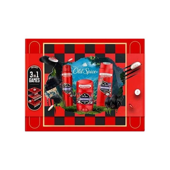 Комплектът съдържа: Old Spice NightPanther Душ гел 250 мл 1 бр + Old Spice NightPanther Део Стик 50 мл 1 бр + Old Spice NightPanther Дезодорант спрей 150 мл 1 бр + Подарък: игри.