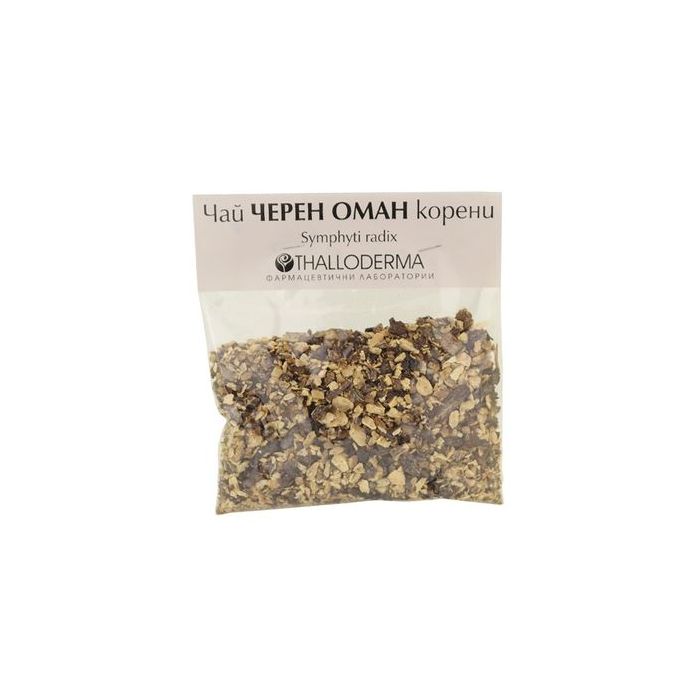 Черен оман (корен) представлява изсушен корен от билката, известна със свойството си да ускорява възстановителните процеси в тъканите. Подпомага заздравяването на труднозарастващи рани и се използва при стомашно-чревни проблеми и различни наранявания. Има изразено противовъзпалително действие. Може да се прилага както вътрешно, така и външно. Черен оман (корен) намира приложение при кашлица, ларингит, бронхит, носни кръвоизливи и колит, според рецептите на народната медицина. Използва се за бани при кожни обриви и рани от изгаряния, за жабурене при разклатени зъби и рани в устната кухина, както и за гаргара при гърлобол и при натъртвания.