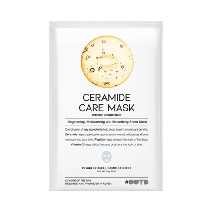 OOTD Ceramide Care Mask е интензивно озаряващата и овлажняваща маска, която помага за поддържане на кожната бариера. Съдържа серамиди, витамин С и пептиден комплекс. Подходяща за всеки тип кожа. OOTD Ревитализираща лист маска за лице видимо озарява, овлажнява и подобрява вида на кожата.